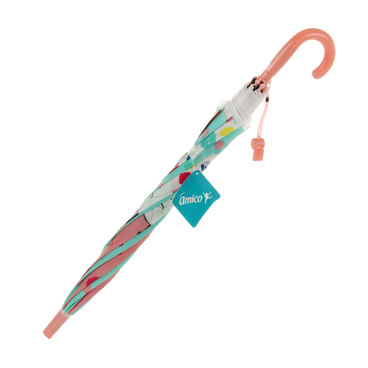 Зонтик полуавтомат закрывается на ремешок на кнопке, есть свисток.