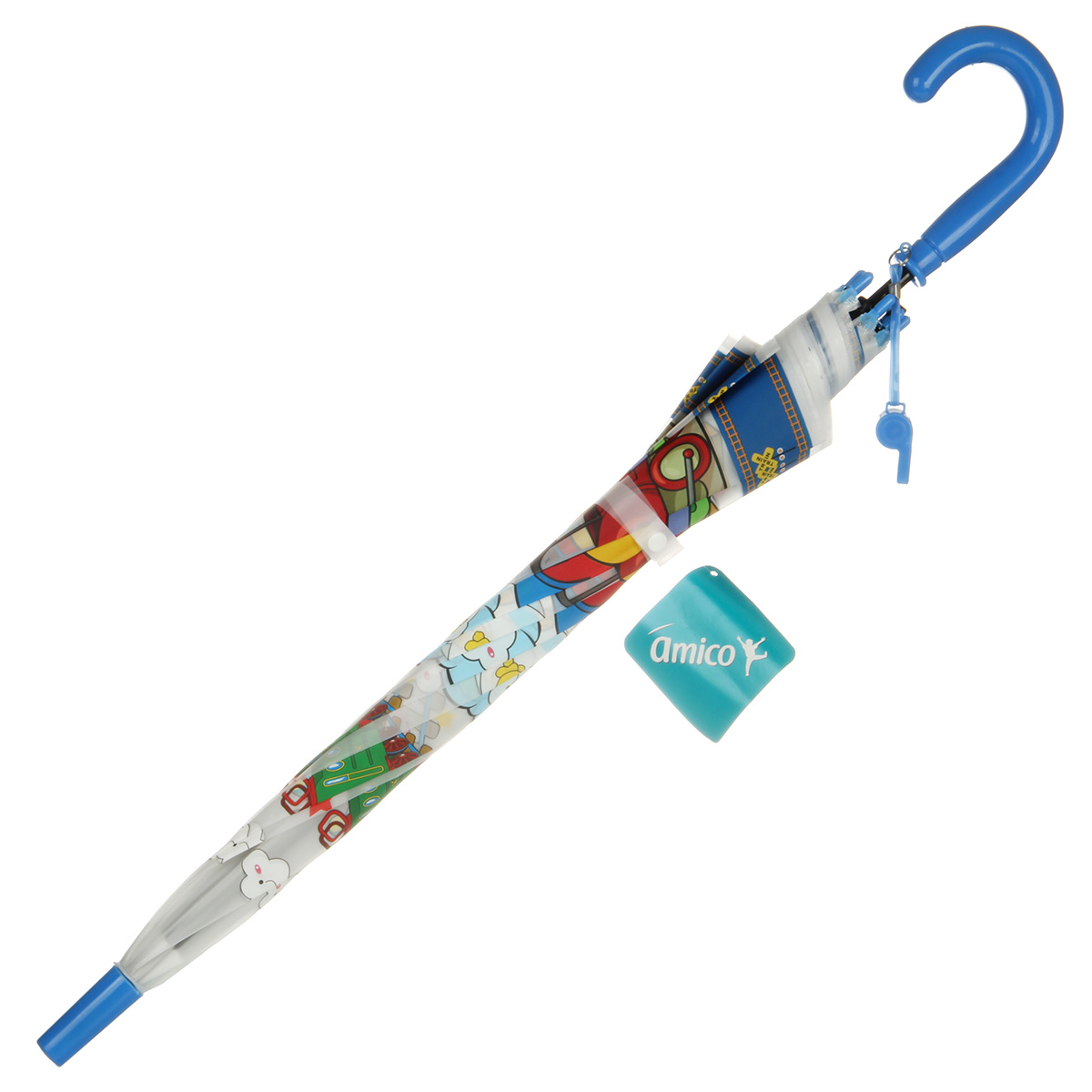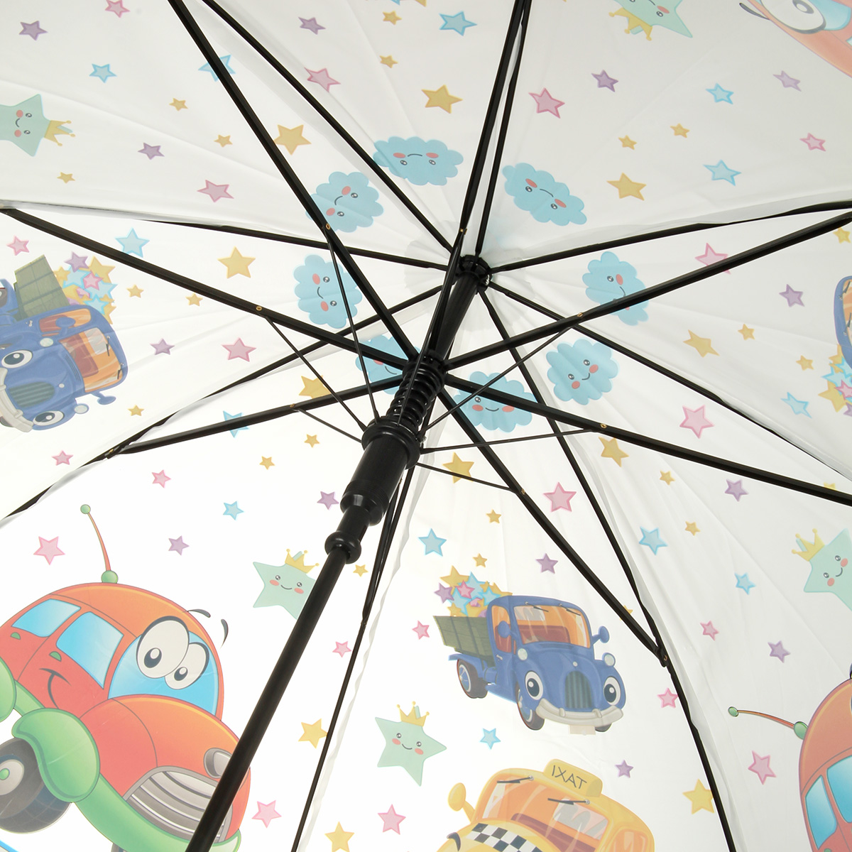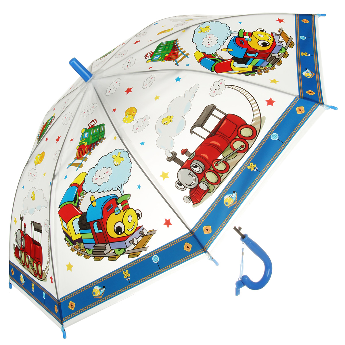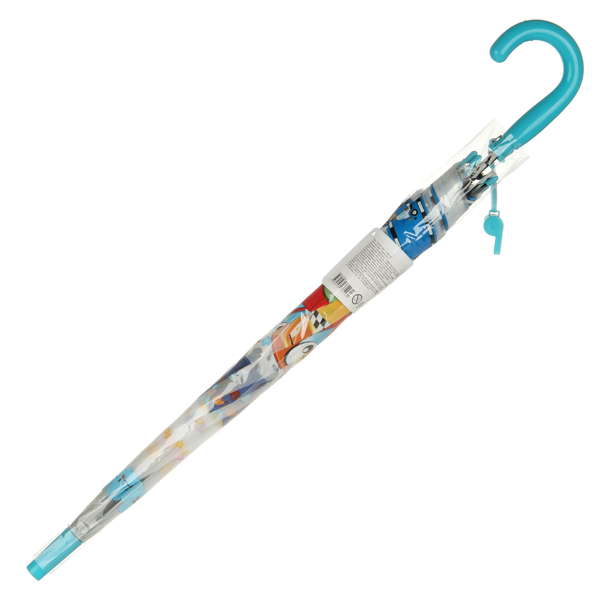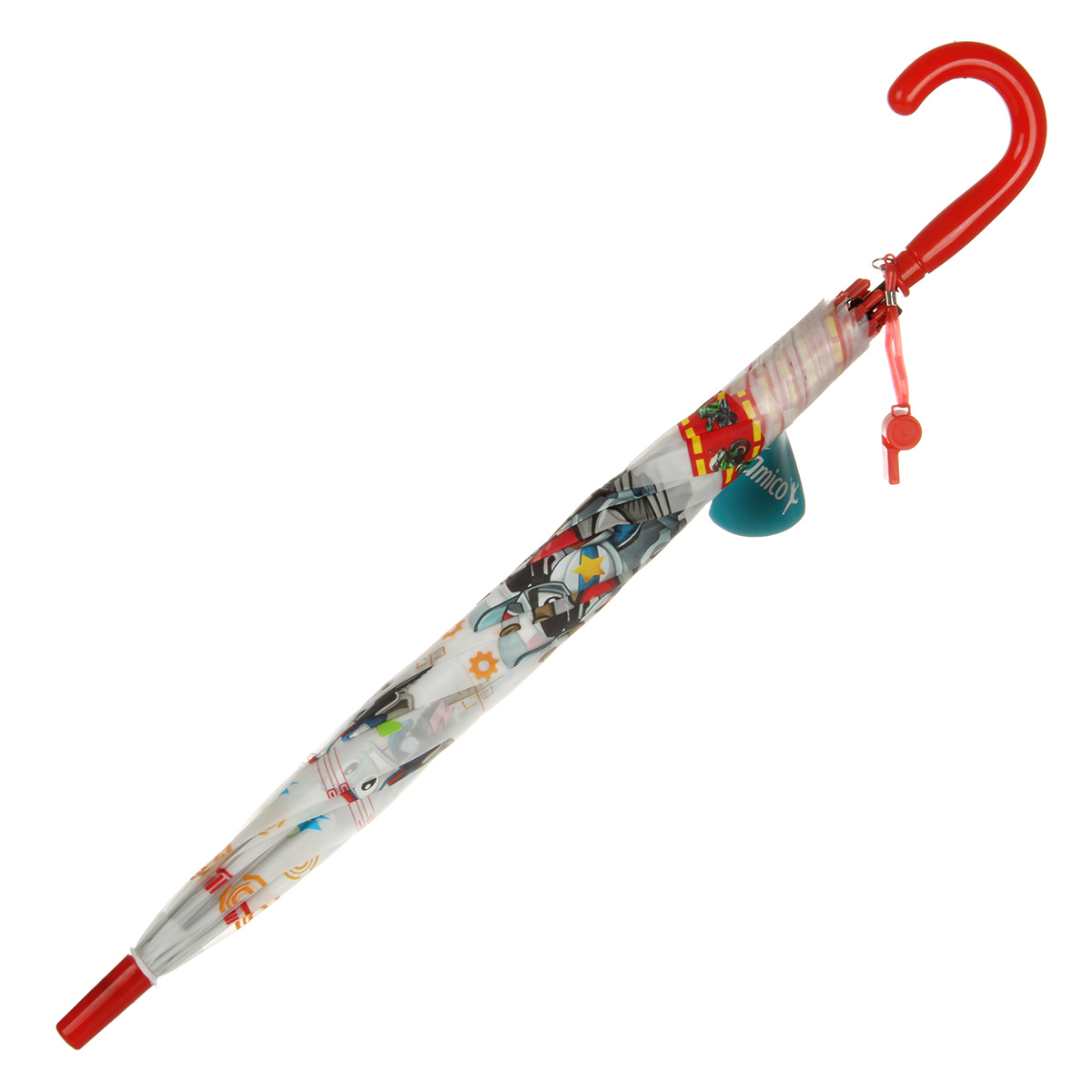 Красивый дизайн, удобная ручка, свисток на веревочке, без такого зонтика-трости не обойдется ни один выход в дождливую погоду. Зонтик детский полуавтоматический, раскрывается путем нажатия кнопки, складывается вручную, закрывается на ремешок на кнопке.