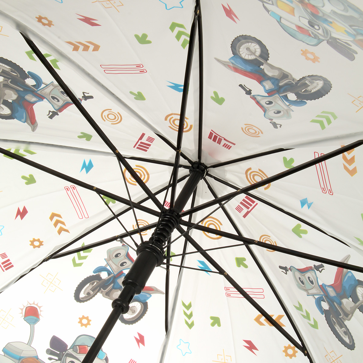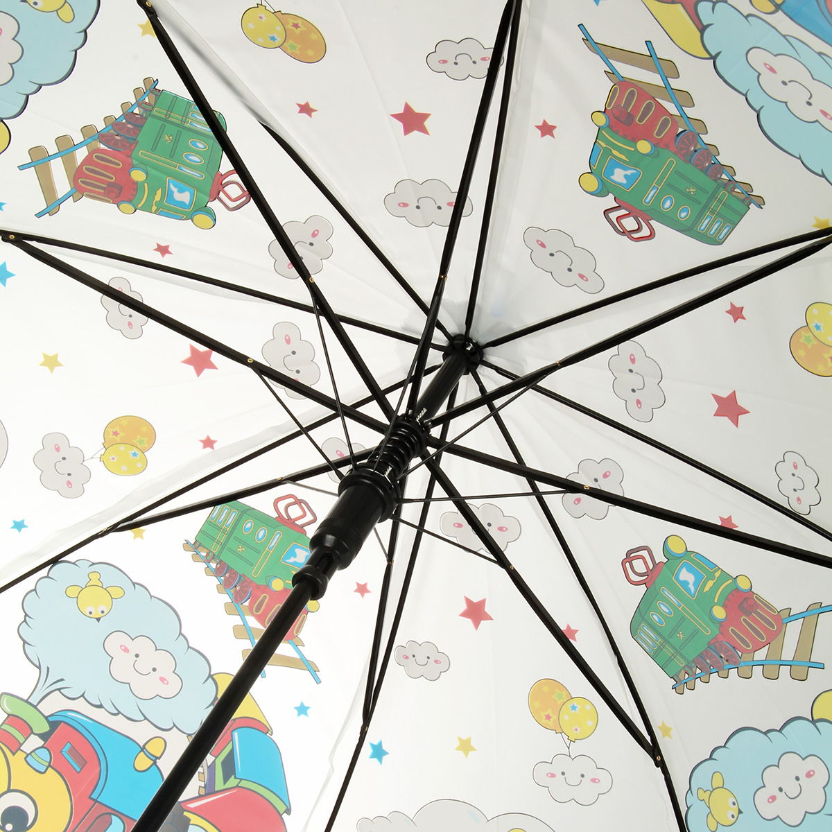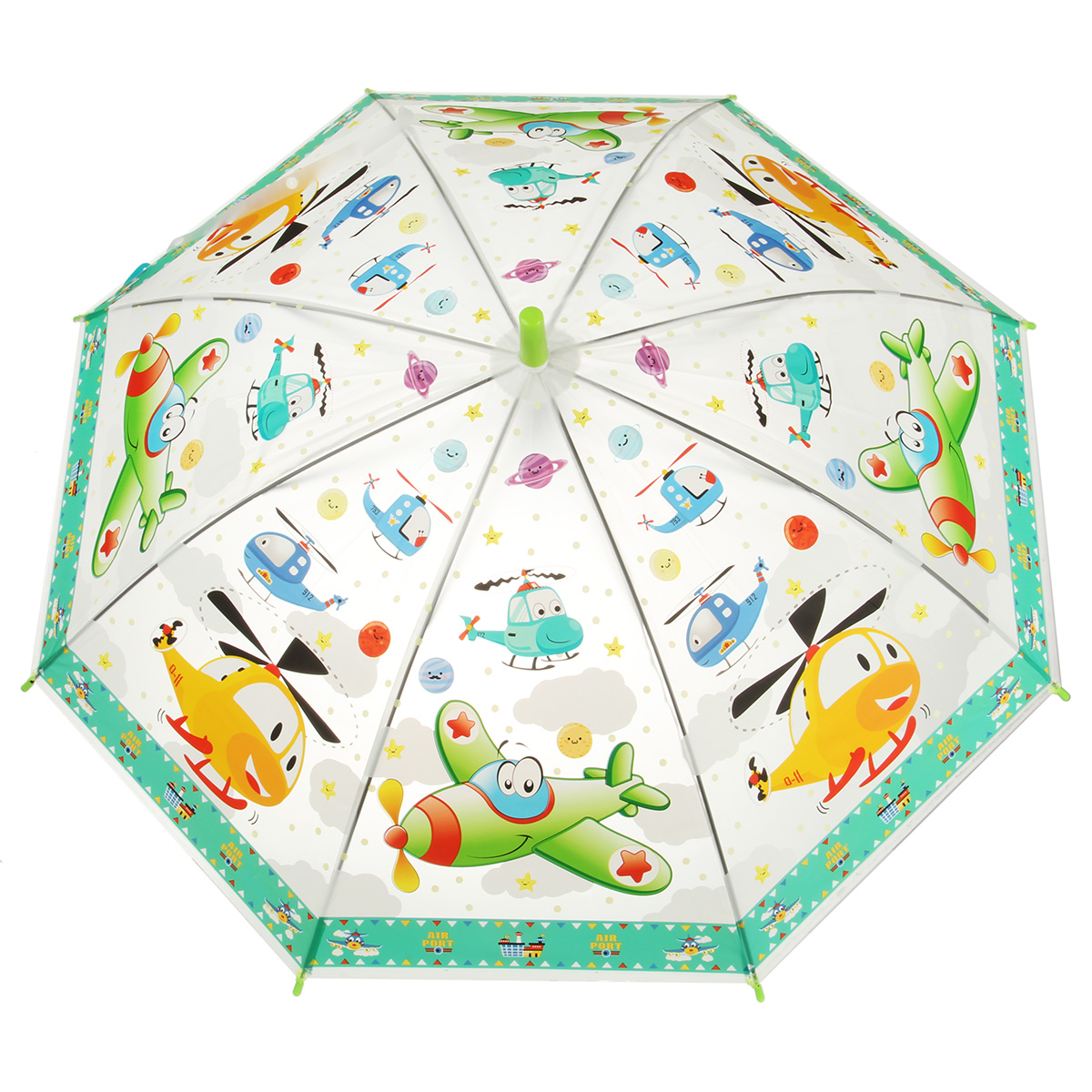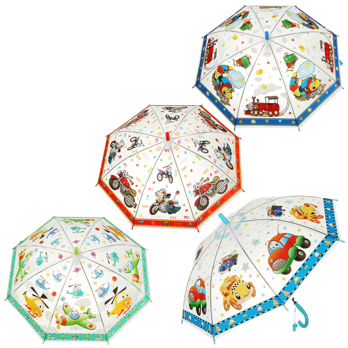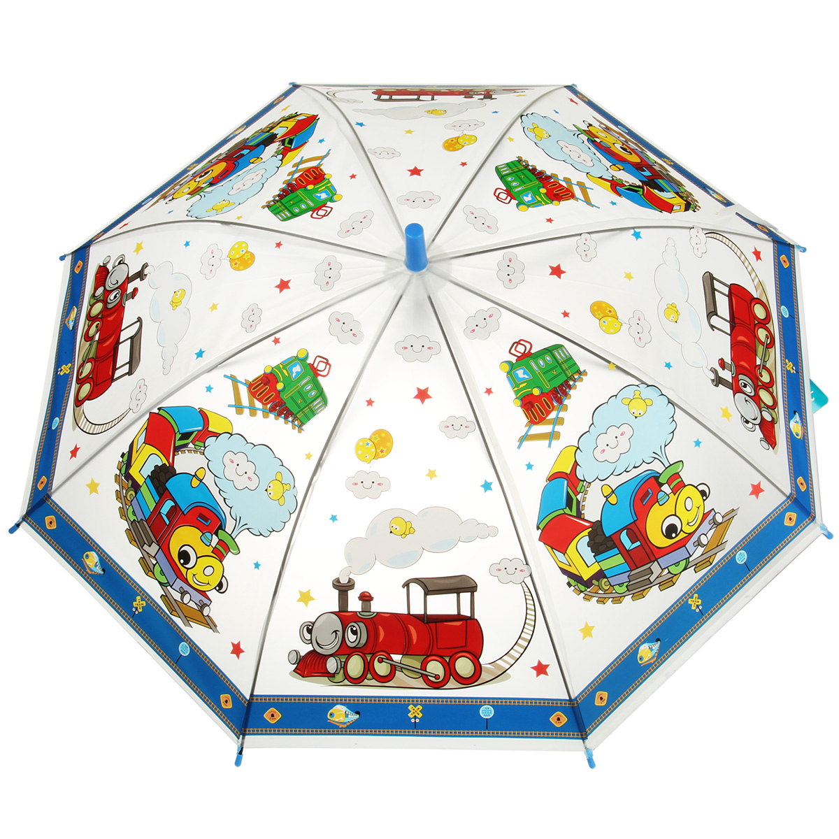 Красивый дизайн, удобная ручка, свисток на веревочке, без такого зонтика-трости не обойдется ни один выход в дождливую погоду. Зонтик детский полуавтоматический, раскрывается путем нажатия кнопки, складывается вручную, закрывается на ремешок на кнопке.