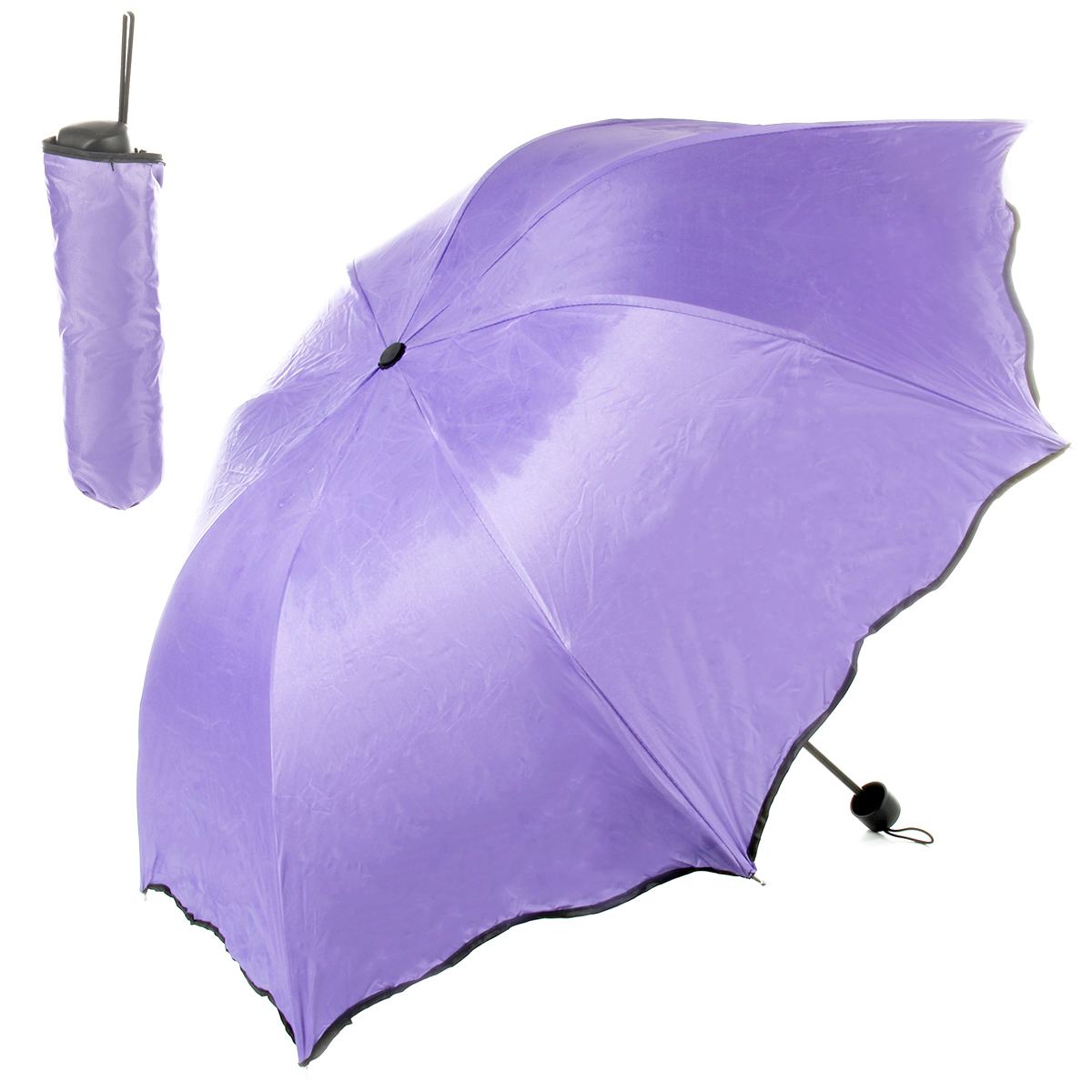 Зонтик складной станет хорошей защитой от солнечных лучей и осадков.