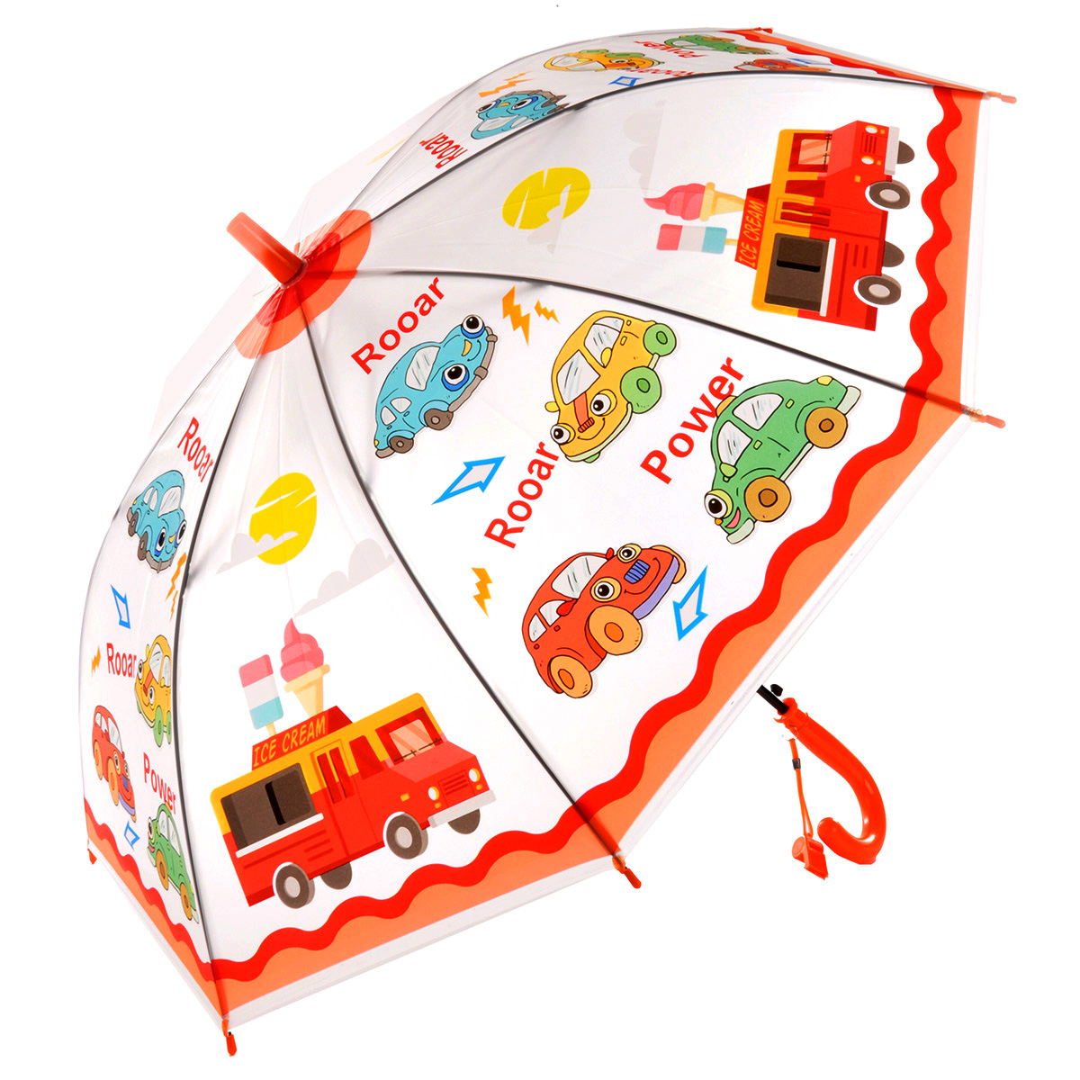Яркий дизайн, удобная ручка - без такого зонтика-трости не обойдется ни один выход в дождливую погоду. Зонтик полуавтоматический, закрывается на ремешок на липучке. Купол зонта матовый, не прозрачный. Функционал зонта: -зонт полуавтоматический; -количество спиц 8. Размеры упаковки: 66*9*5 см. Диаметр зонта в раскрытом виде: 77 см. Изготовлено из полимерного материала.
