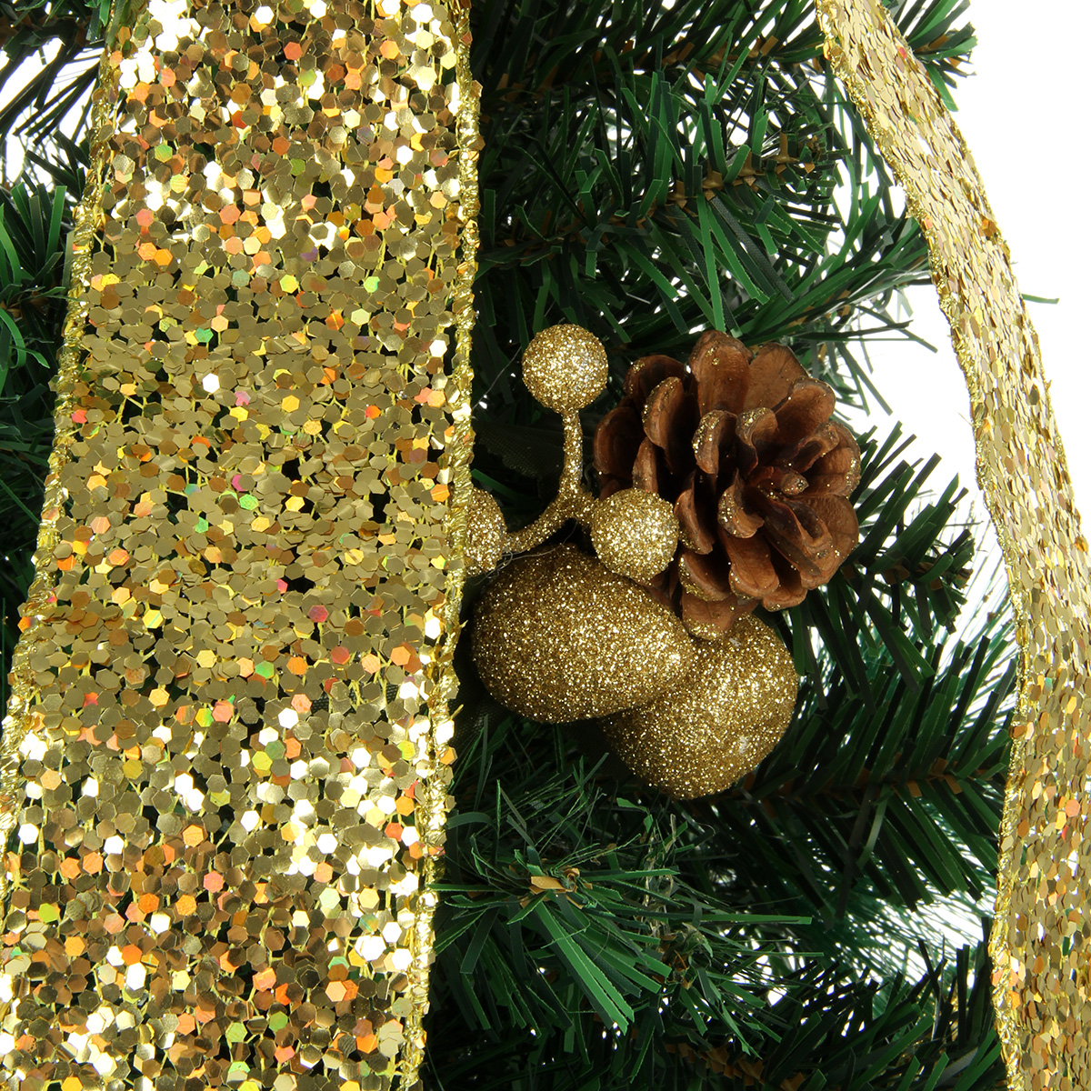 Бант синтетический текстильный материал с глиттером, настоящие шишки, полимер.