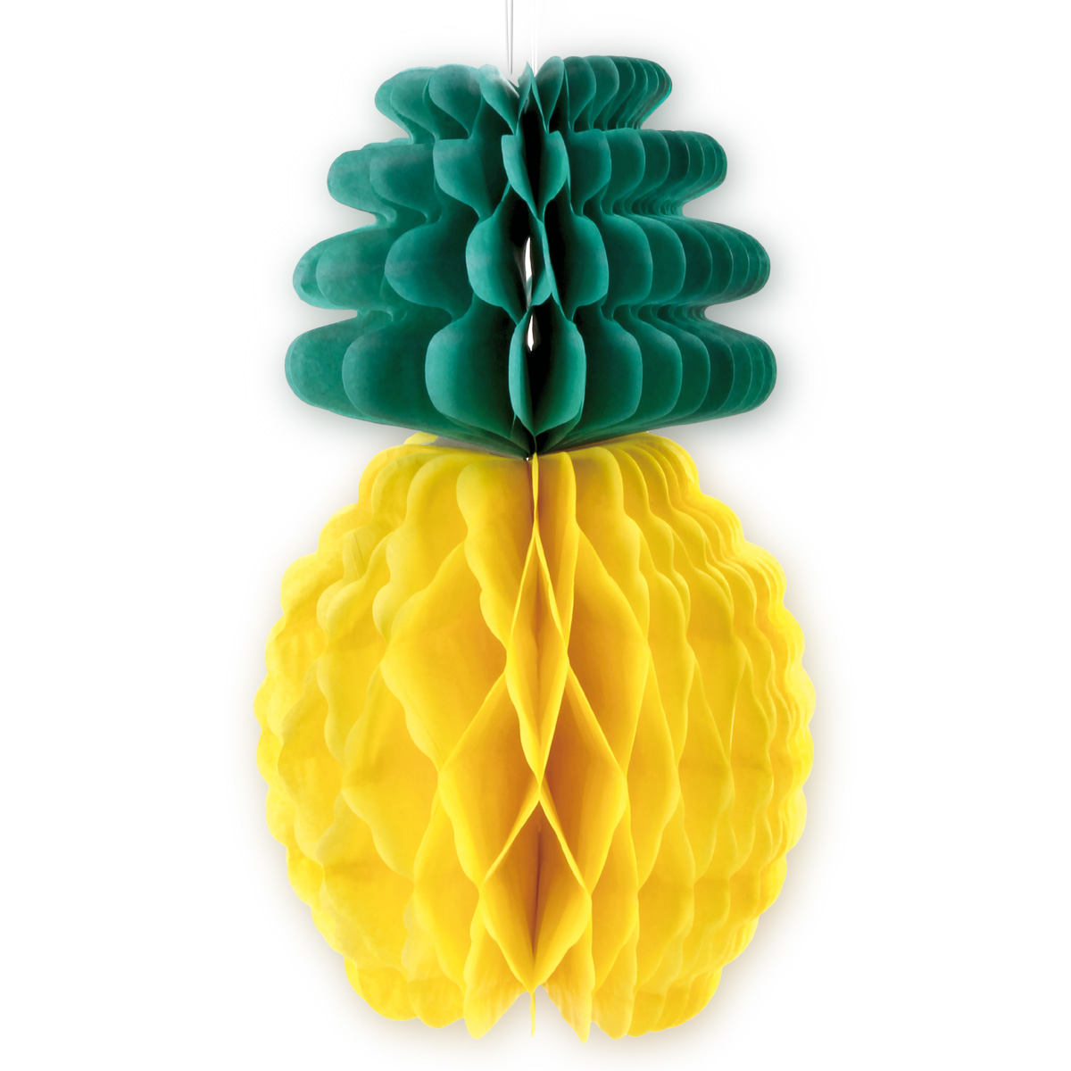Бумажное украшение в виде фигурки ананаса - очень красивый, яркий и модный элемент для декора помещения. Легко раскладывается и складывается, поставляется в сложенном виде. В комплект входят украшение-ананас и скрепки. Принципы сборки украшения: - разверните сложенное украшение, соединив края; - зафиксируйте края с помощью скрепок. На ананасе есть веревочка-петелька, за которую удобно подвесить украшение. С помощью бумажных фигурок можно украсить не только интерьер, но и арки, шатры, праздничные столы. Фигурка-ананас изготовлена из картона, бумаги и текстильного материала, упакована в пакет. Высота разложенной фигурки: 30 см. Размеры украшения в упаковке: 15*0,5*34 см.