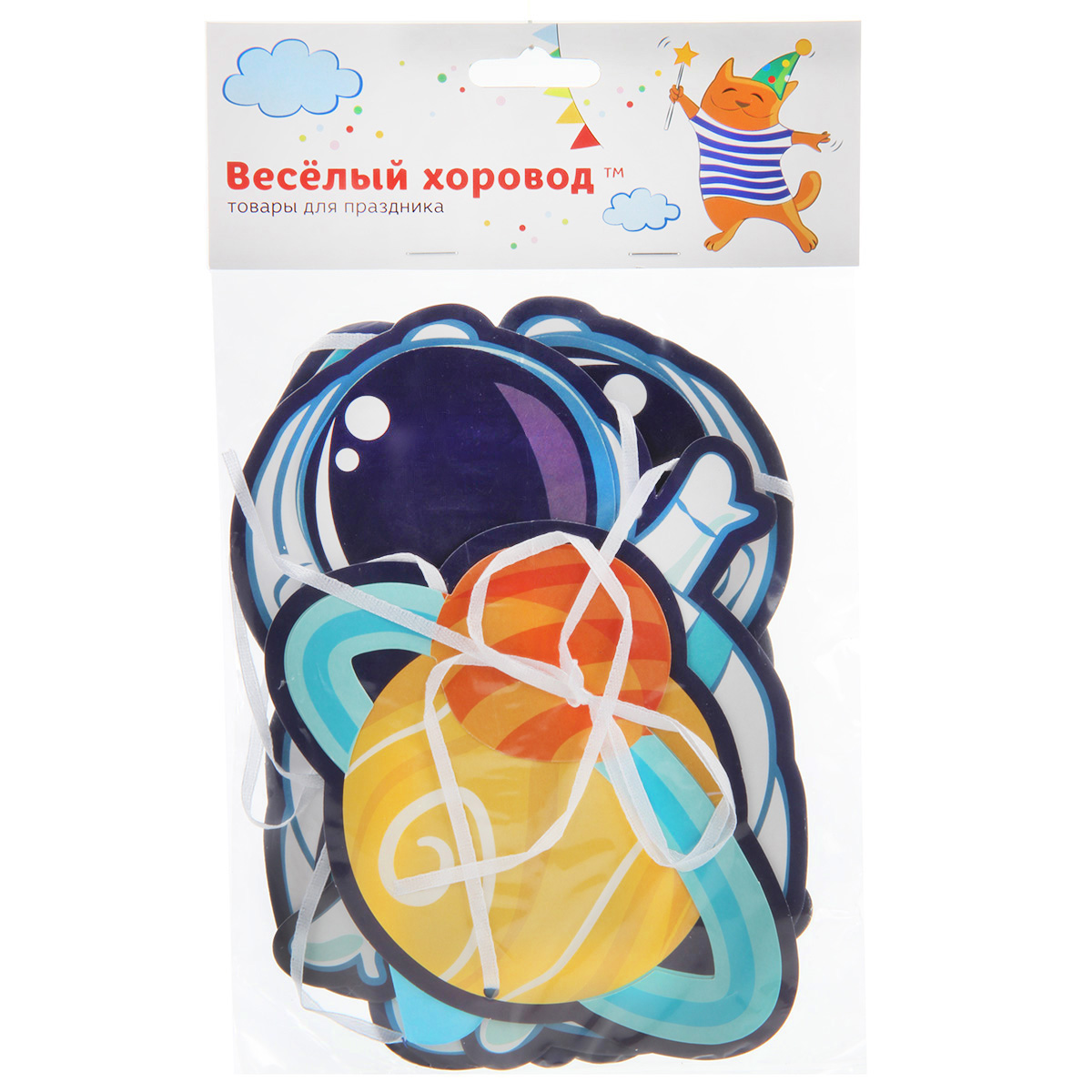 Серия товаров для праздника "Космос" - это то, что необходимо для хорошего настроения и весёлой атмосферы праздника! Очень красивая и яркая гирлянда "Космос"! Такая гирлянда прекрасно украсит банкетный зал или домашний интерьер! Элементы гирлянды крепятся между собой с помощью красивой веревочки. Вуаля, незаменимый атрибут для празднования любого мероприятия готов! Гирлянда упакована в пакет с картонным хедером с отверстием. Длина гирлянды: 2,5 м. В нашей серии собраны самые необходимые предметы сервировки стола и украшения помещения в единой тематике: тарелочки, стаканчики, колпаки, салфетки, набор свечей, гирлянда, украшения для праздника. С серией "Космос" потрясающий праздник вам будет обеспечен, а оформление стола и украшение помещения станет таким же лёгким и удобным, как и его уборка.