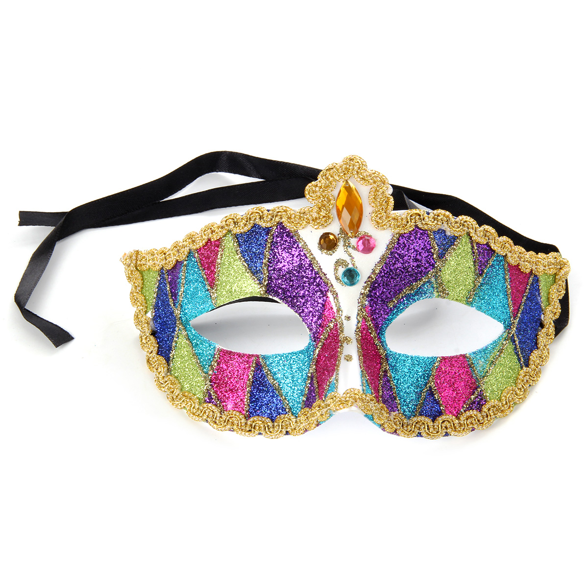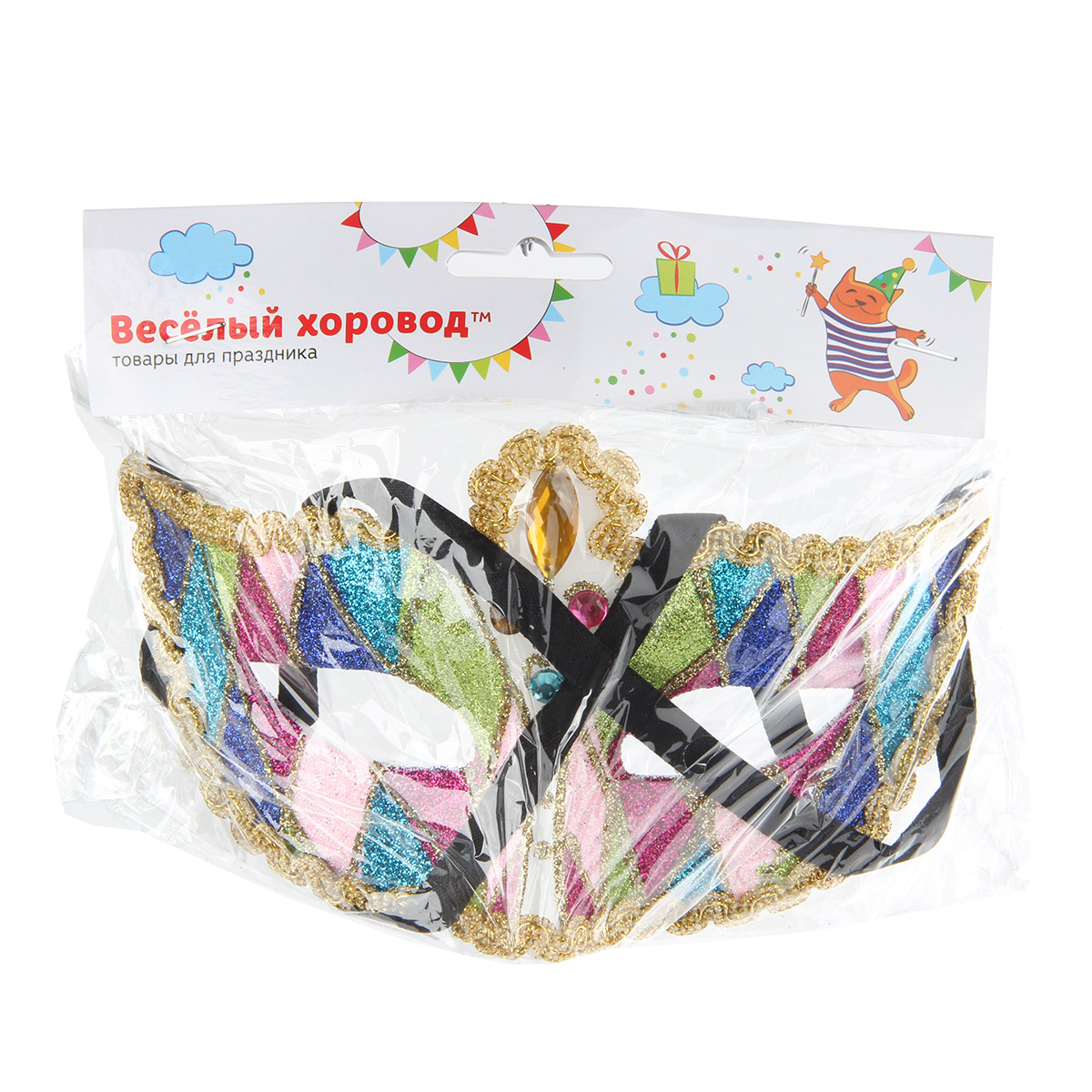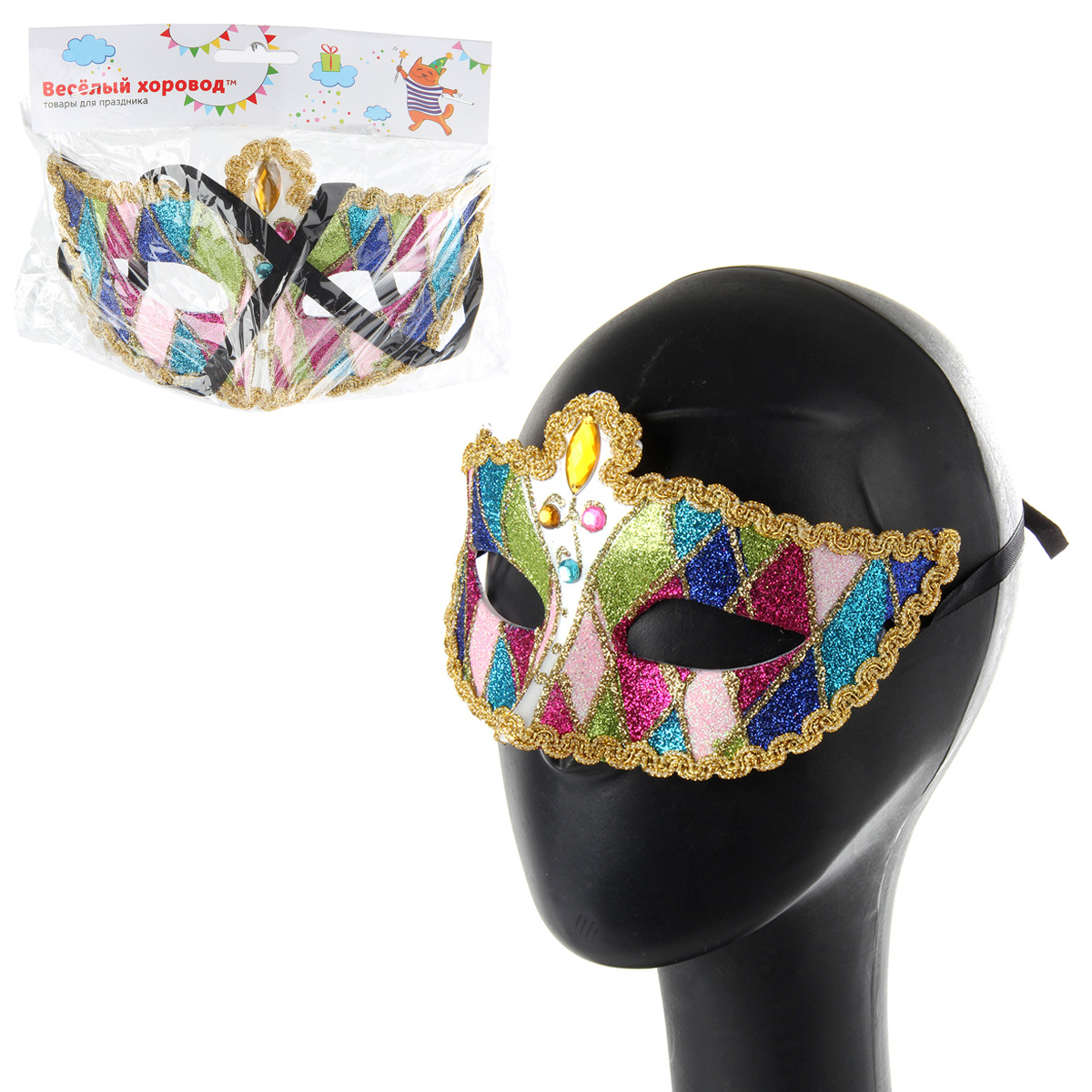 Аксессуар, который прекрасно дополнит любой карнавальный образ - красивая маска, выполненная в элегантном и роскошном стиле! Маска отделана тесьмой, украшена разноцветными стразами и блестками. На задней стороне есть две ленточки, которые завязываются на голове. Благодаря этому маска подойдет для любого размера головы. Добавьте своему праздничному образу загадочности и сдержанного лоска с этой маской! Расцветки маски представлены в ассортименте. Маска изготовлена из пластика, есть тканевые элементы. Упакована в пакет с картонным хедером с отверстием. Размеры маски: 18*7*10 см. Размеры маски в упаковке: 24*7,5*16 см.