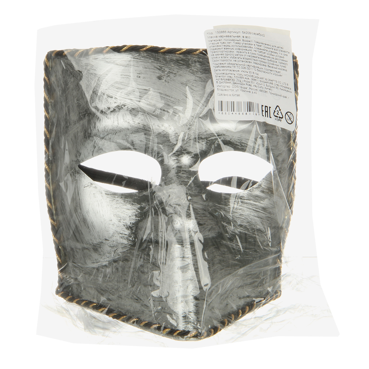 Маска карнавальная для создания различных образов, театральных постановок и костюмированных вечеринок. Может использоваться самостоятельно и в качестве дополнения к карнавальному костюму. На завязках. Завязки длинные. Материалы: полимер, ткань. Размеры маски: 17*11*16 см. Размеры прорези для глаз: 5*2 см. Размеры в упаковке: 24*11*26 см.