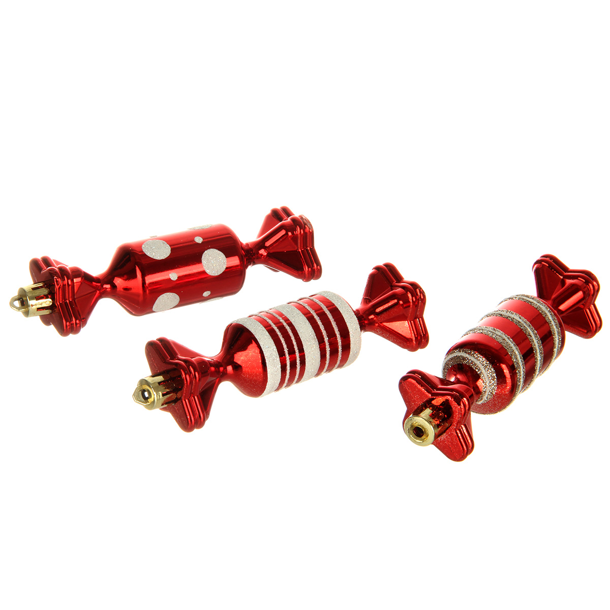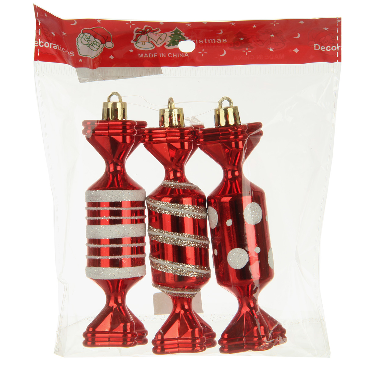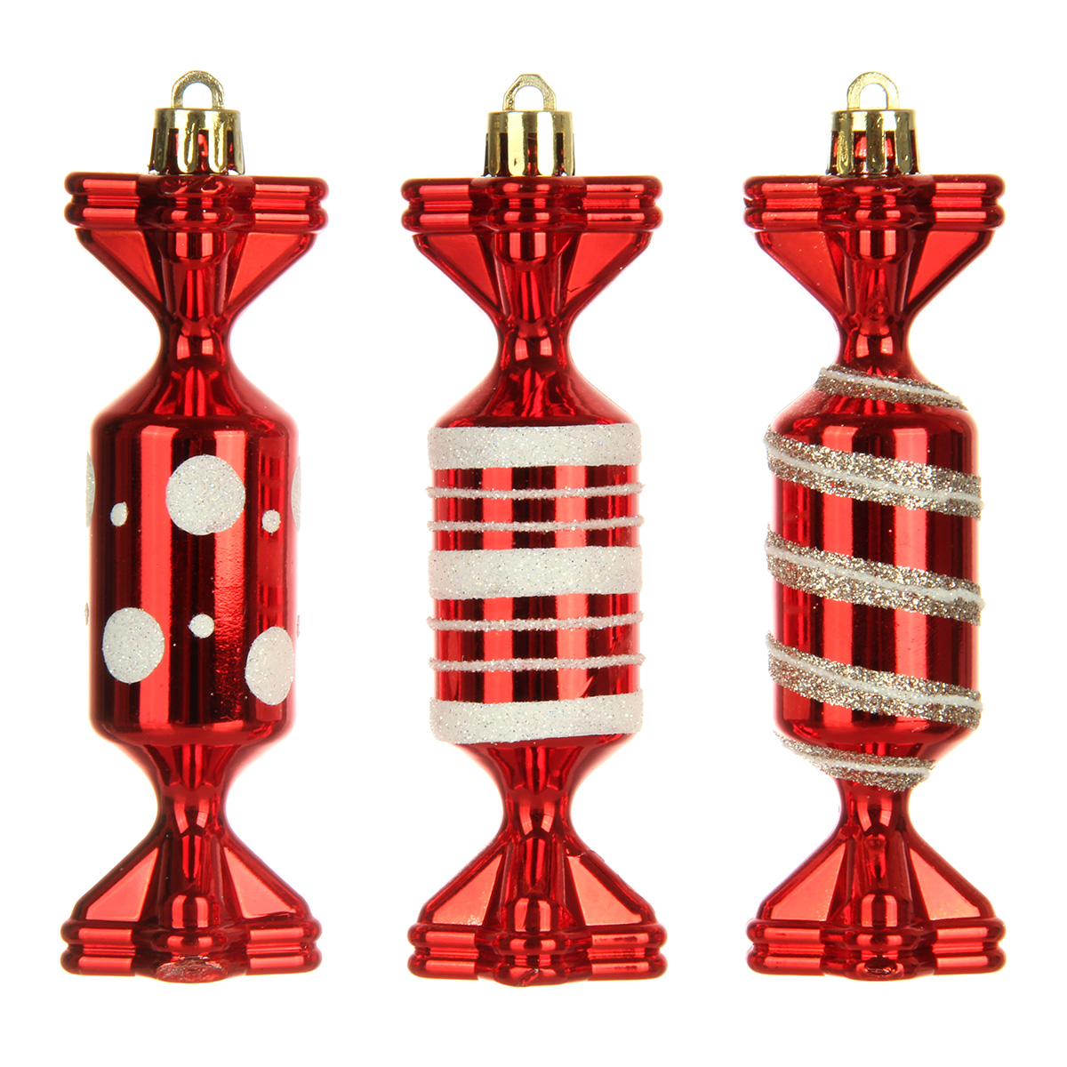 Набор рождественских украшений в виде фигурок конфеток, это практичный и изящный вид декора. Декор на елку новогодний отличается качественным исполнением, вниманием к деталям, выполнен в элегантном и красивом дизайне. Фигурки на елку изготовлены из долговечных материалов, елочное украшение конфетка долго прослужит, радуя глаз и даря приятные эмоции. Украсьте хвойную скромницу новогодними сувенирами для елки, чтобы она стала еще красивее и прекраснее. Сам процесс украшения елки станет маленьким волшебством, ведь это занятие обожают и взрослые, и дети.