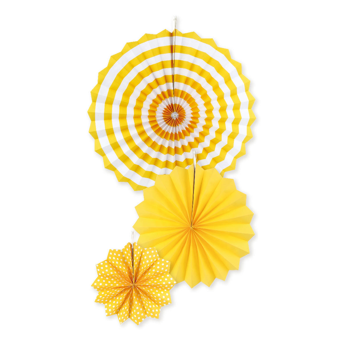 Фанты - это круглые "веера"-розетки, красиво сочетающиеся с гирляндами тассел и шарами. Идеально подходят для украшения помещения к праздничным мероприятиям. В наборе 3 фанта диаметром 40, 30, 20 см, цвет - желтый, сделаны из плотной бумаги. Можно складывать и хранить в плоском виде, фанты раскладываются по принципу веера. Набор изготовлен из картона, бумаги и текстильного материала. Упакован в пакет. Размеры набора в упаковке: 10*2*25 см.