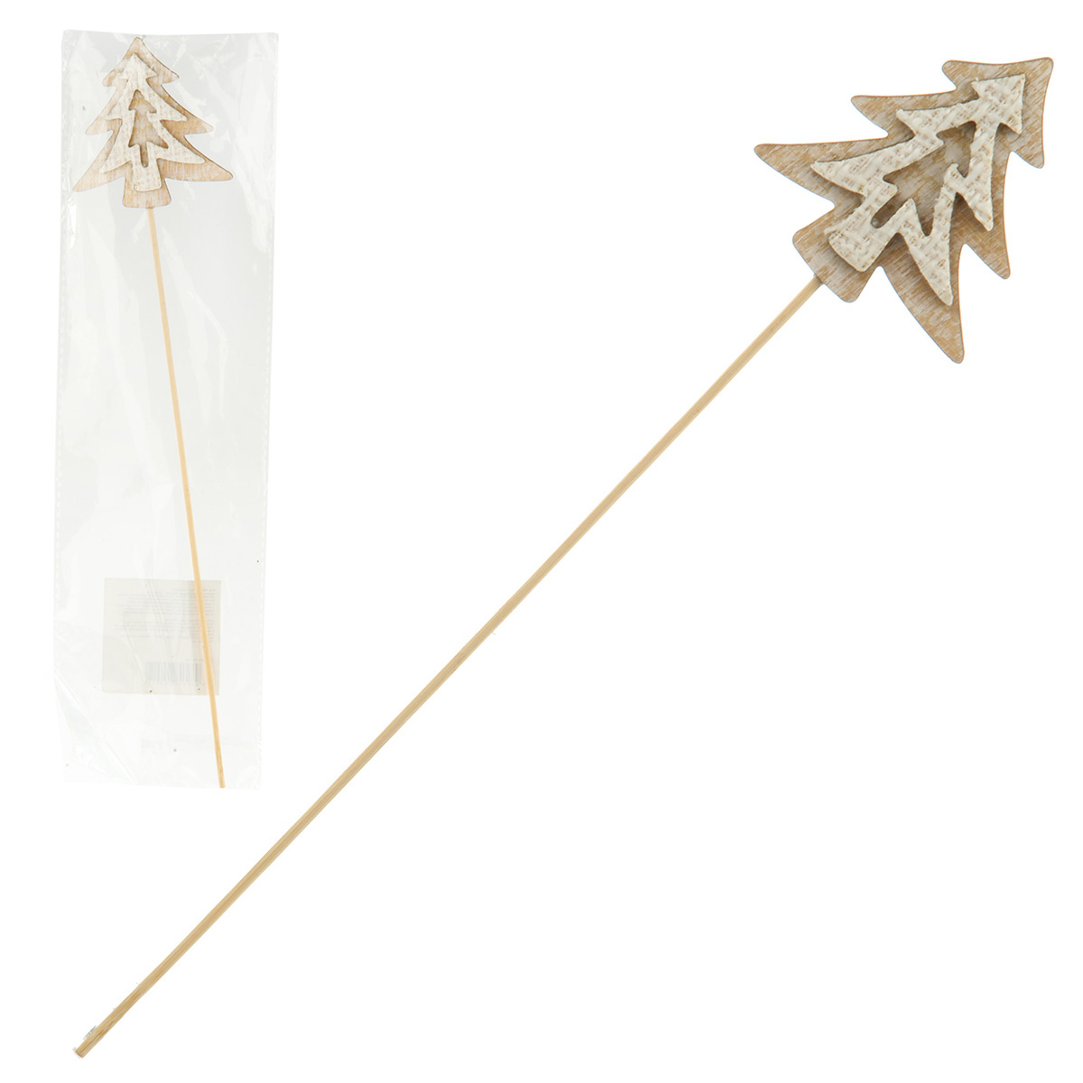 Новогоднее украшение в форме елочки на палочке. Такое простое, но очень оригинальное украшение отлично подходит для оформления помещения в новогоднем стиле. Не является детской игрушкой. Материал: дерево. Размеры ели: 7*7 см. Размеры украшения: 7*1*32 см. Размеры в упаковке: 9*1*32 см.
