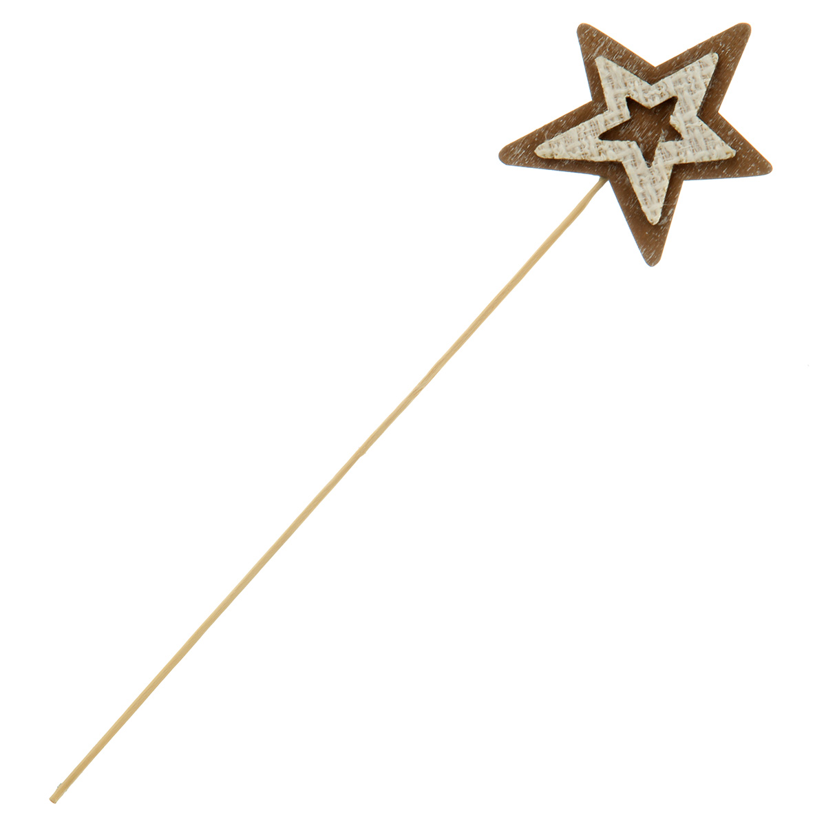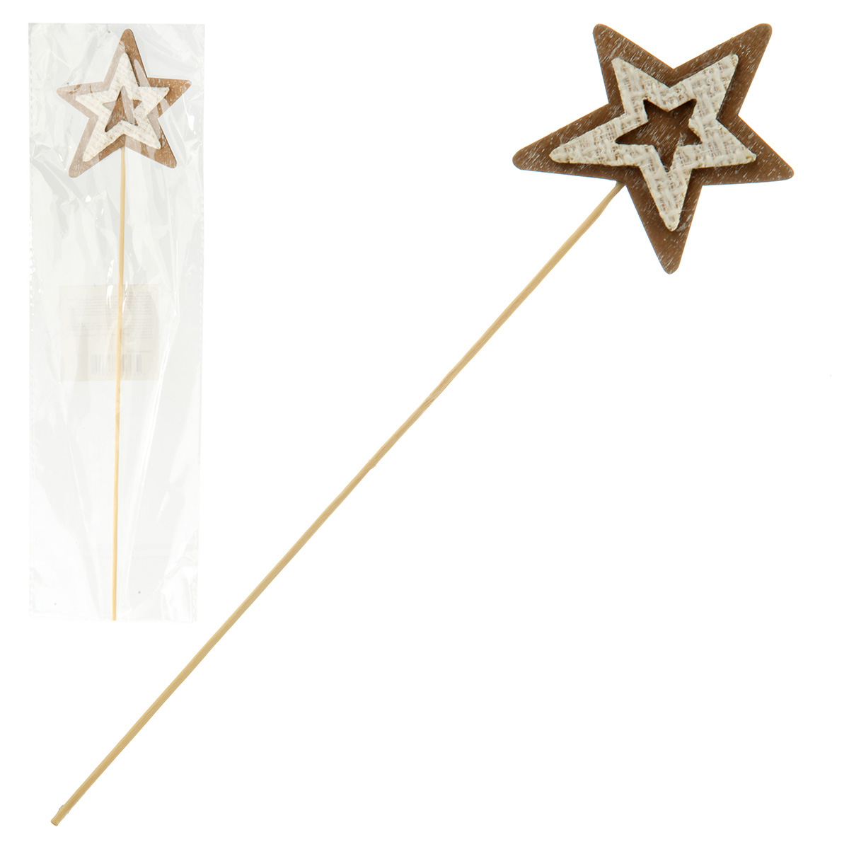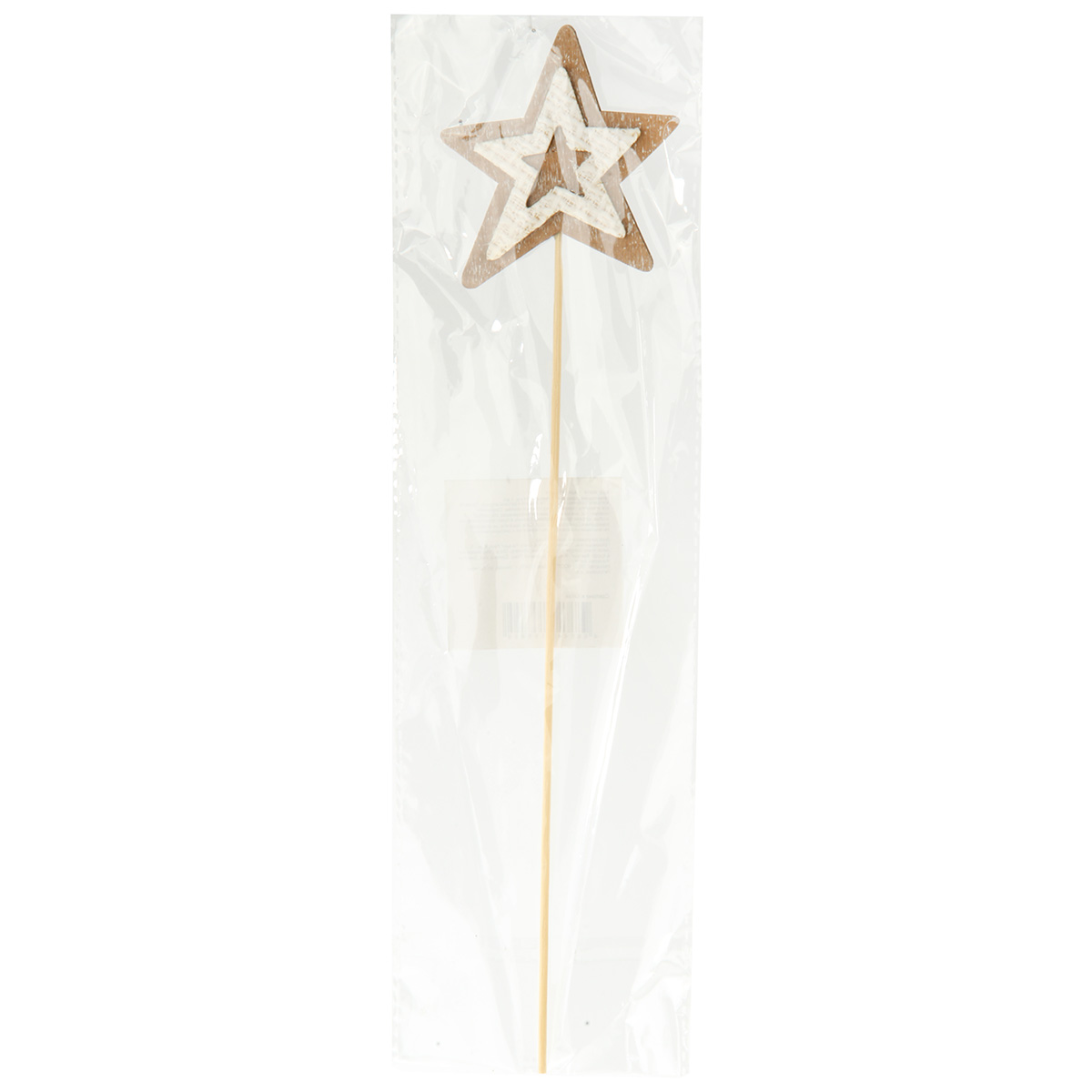 Новогоднее украшение в форме звезды на палочке. Такое простое, но очень оригинальное украшение отлично подходит для оформления помещения в новогоднем стиле. Не является детской игрушкой. Материал: дерево. Размеры звезды: 7*7 см. Размеры украшения: 7*1*30 см. Размеры в упаковке: 9*1*30 см.