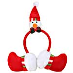 Ободок новогодний, деда мороз. Ободок подходит для создания различных образов, театральных постановок и вечеринок. Может использоваться как самостоятельно, так и как дополнение к карнавальному костюму. D 12 см, растягивается. На обьем головы до 50 см. Снеговик длиной 16 см, наушник 10 см.