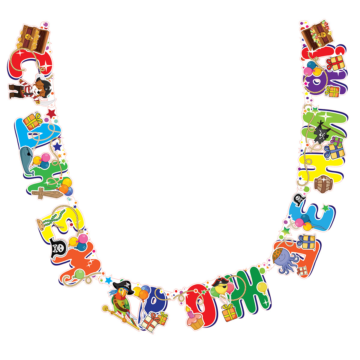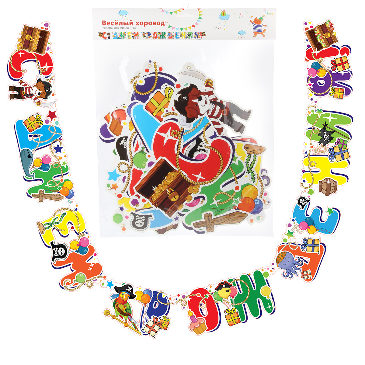 Очень красивая и яркая растяжка-гирлянда с поздравлением "С Днем рождения"! Такая гирлянда прекрасно украсит банкетный зал или домашний интерьер! Буквы крепятся между собой с помощью колец пикколо. В буквах уже вырезаны отверстия, необходимо их только выдавить из картона и подвесить гирлянду за концы в выбранное место в помещении! Вуаля, незаменимый атрибут для празднования Дня рождения готов! Именинник будет очень доволен! Гирлянда изготовлена из картона, упакована в пакет с картонным хедером с отверстием. Длина гирлянды: 2,4 м. Высота букв: 17 см. Размеры гирлянды в упаковке: 35*0,5*44,5 см.