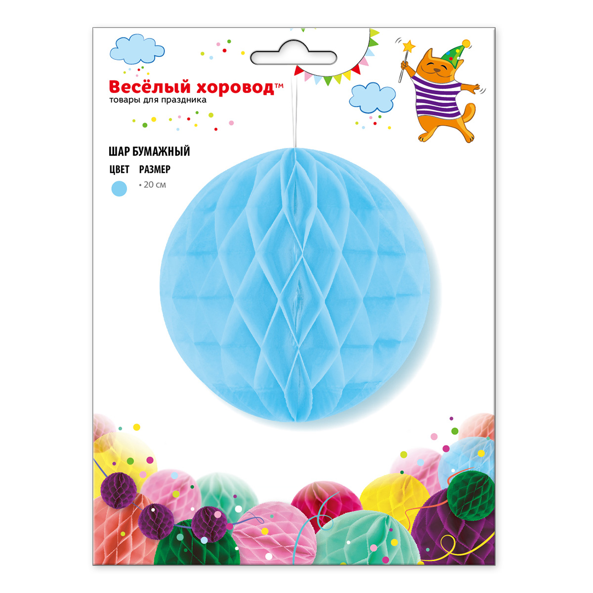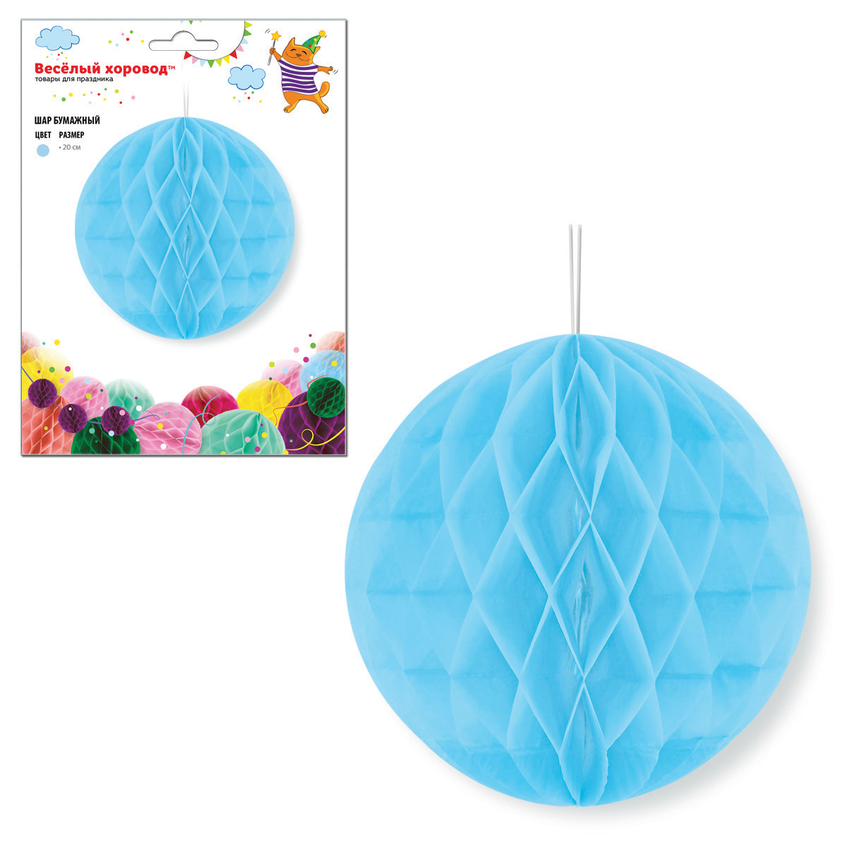 Бумажный шар - очень красивый, яркий и модный элемент для декора помещения. Легко раскладывается и складывается, подойдет для украшения помещения к любому торжеству, поставляется в сложенном виде, цвет - голубой. Принципы сборки бумажного шара: - разверните сложенный шар; - соедините и зафиксируйте края, сняв защитные полоски с двустороннего скотча, который имеется на одной из сторон шара. На шарике есть веревочка-петелька, за которую удобно подвесить шарик. С помощью бумажных шаров можно украсить не только интерьер, но и спинки стульев, арки, шатры, праздничные столы. Бумажные шары хорошо сочетаются с шарами других цветов. Шар изготовлен из картона, бумаги и текстильного материала, упакован в пакет. Диаметр разложенного шара: 20 см. Размеры шара в упаковке: 13*0,5*22 см.