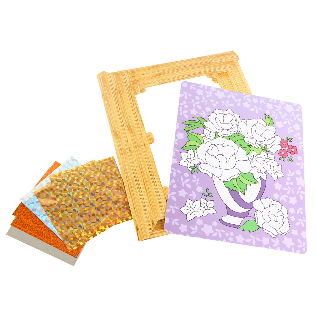 Картина из фольги "Букет" . Состав: картонная рамка и картонная основа с клейким слоем, цветная фольга 6 цв, 12 шт: красный, зеленый, желтый, синий, серебряный, золотой. Развивает мелкую моторику рук и фантазию ребенка. Рекомендован для детей в возрасте от 3 лет. Картонная коробка , размер 24х29х1,5 см. Инструкция на упаковке.