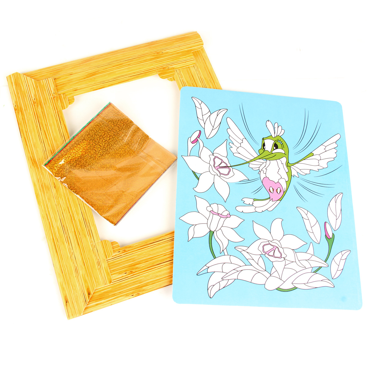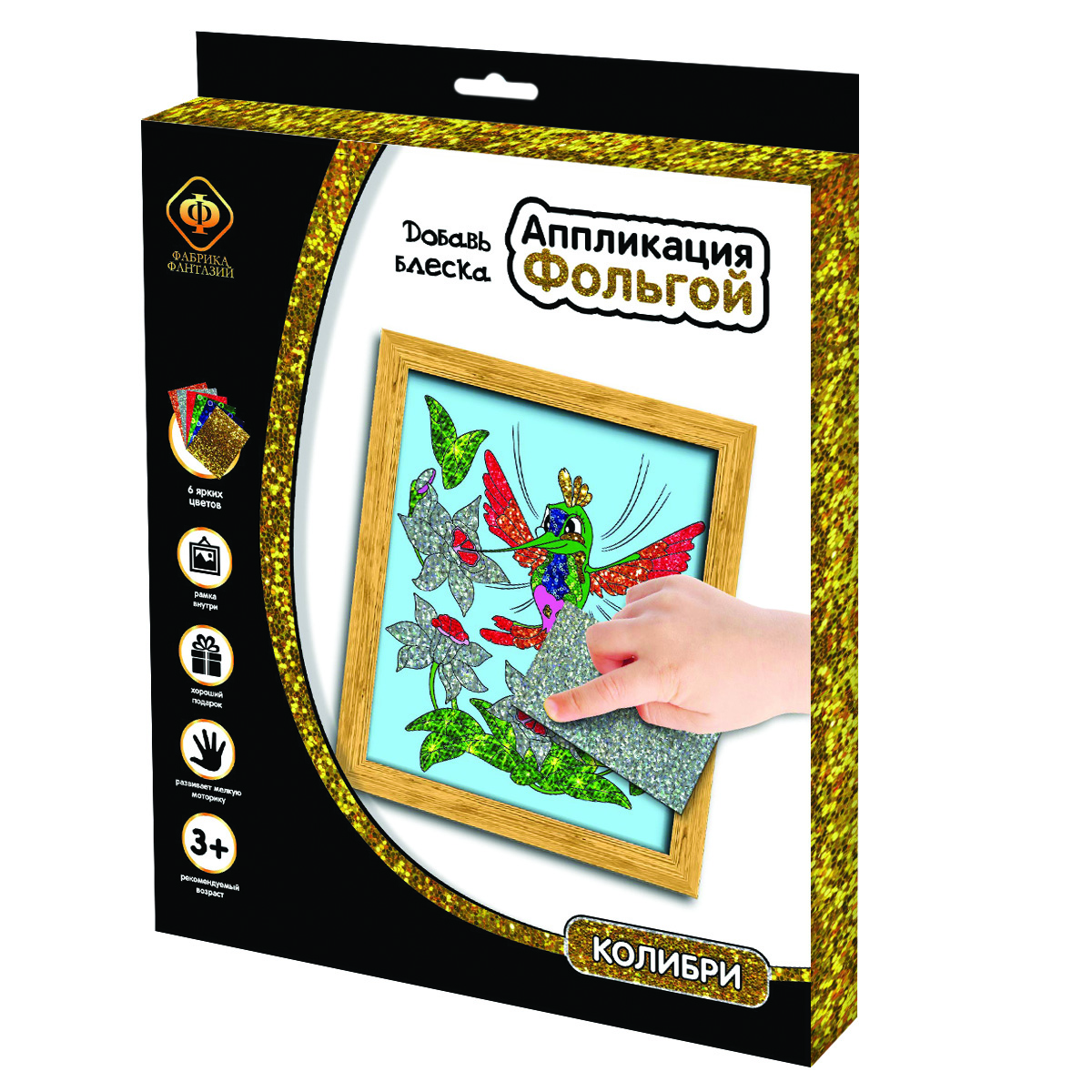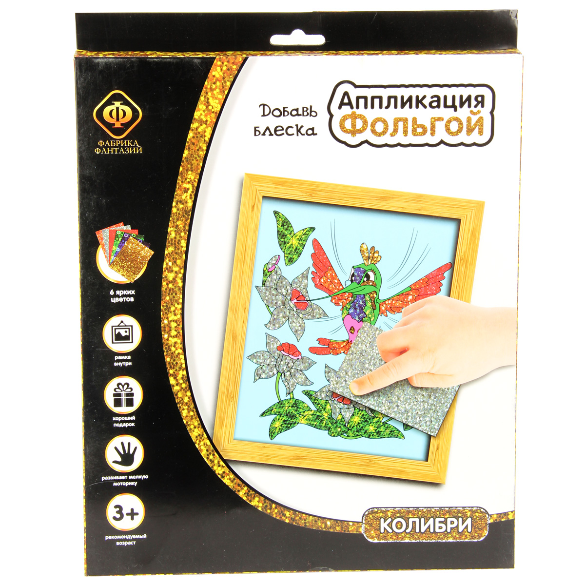 Картина из фольги "Колибри" . Состав: картонная рамка и картонная основа с клейким слоем, цветная фольга 6 цв, 12 шт: красный, зеленый, желтый, синий, серебряный, золотой. Развивает мелкую моторику рук и фантазию ребенка. Рекомендован для детей в возрасте от 3 лет. Картонная коробка , размер 24х29х1,5 см. Инструкция на упаковке.