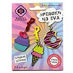 Набор для творчества "Брелоки из EVA". EVA foam, или фоамиран, или по-просту "пенка" - это прекрасный материал для творчества! Он легкий, яркий, прочный и приятный на ощупь. В наборе есть все необходимое для создания трех забавных брелоков. Не нужны ножницы и клей. На детали уже нанесен клеевой слой, поэтому брелочки собираются легко, быстро и чисто. В наборе: пластиковый карабин с колечком 3шт, набор деталей из EVA с клеевым слоем 3 комплекта. Рекомендуемый возраст: 5+ Размер: 10*3*13см
